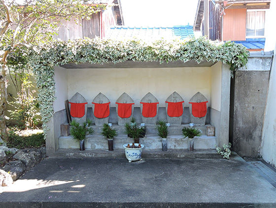 解説等:山に抱かれた法華寺に連なう沿道に左右に広がる漁村の町並み
