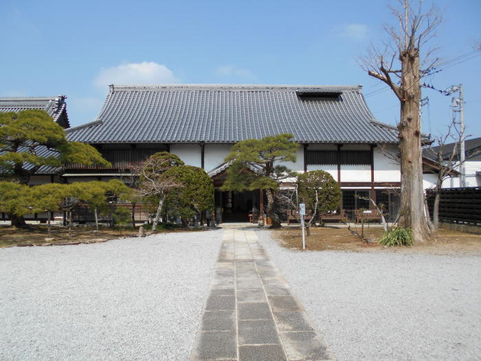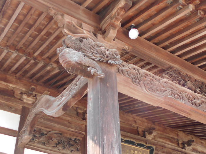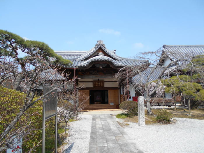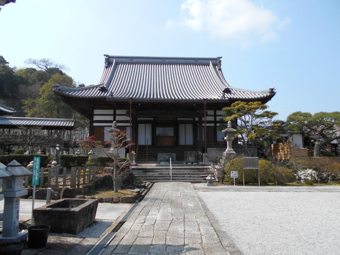 解説等:本堂は明治四十年(1907)に再建され、平成三年(1991)に改修されました。仏を祀る内陣には法然上人自作と伝わる阿弥陀如来像が安置されています。法然寺の前身である生福寺(まんのう町)から伝来したとも言われ、法然上人が一刀彫るたびに三度礼拝しながら作成したという逸話があり、「法然上人一刀三礼(さんらい)の秘仏」とも言われています。その他にも波乗りの法然上人像、親鸞聖人像、善導大師像、来迎の阿弥陀三尊像、中品下生(ちゅんぽんげしょう)の印を結ぶ阿弥陀如来立像の木像が安置されています。
