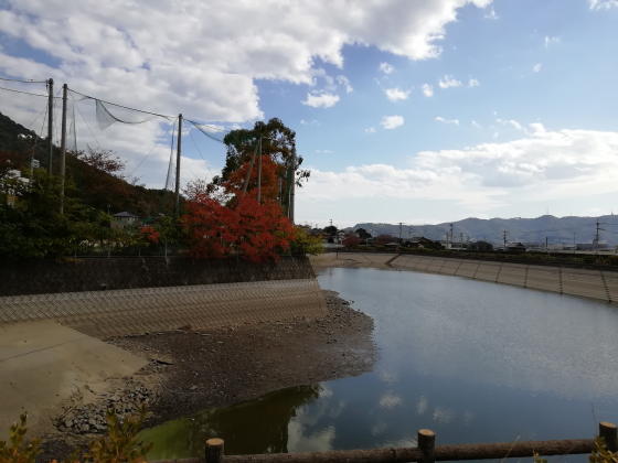 尚、この池の堰堤は、屋島寺へのへんろ道に当たる。ケーブルカーやドライブウェイが無かった当時は、此処から上って行った。現在も歩き遍路さんたちは、今日も上がって行っていた。道標も立っている。