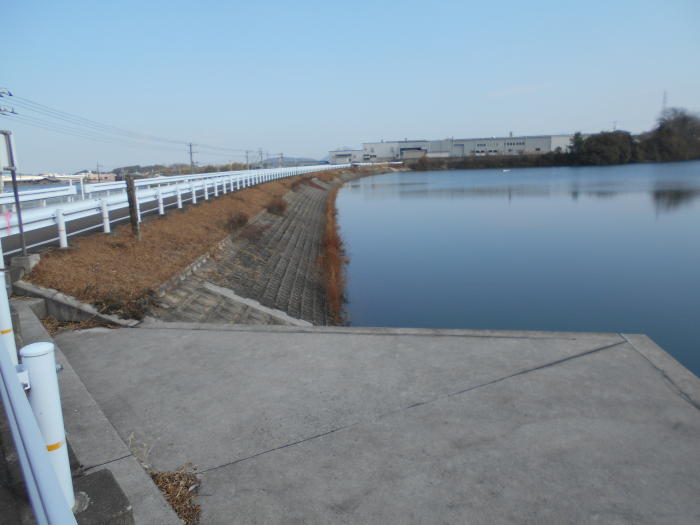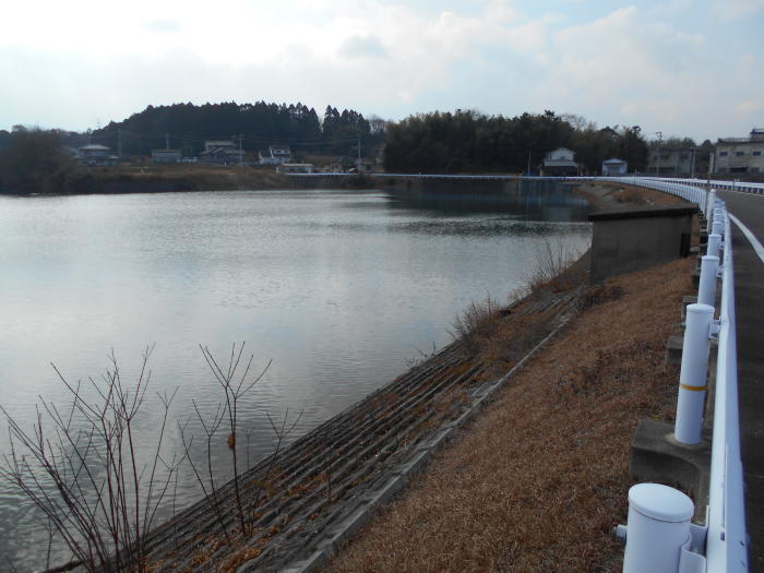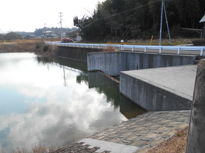 昭和三十六年(1961)十一月、第一期工事として堤体前付け及び樋管取り換え工事着手。同三十八年三月完了。